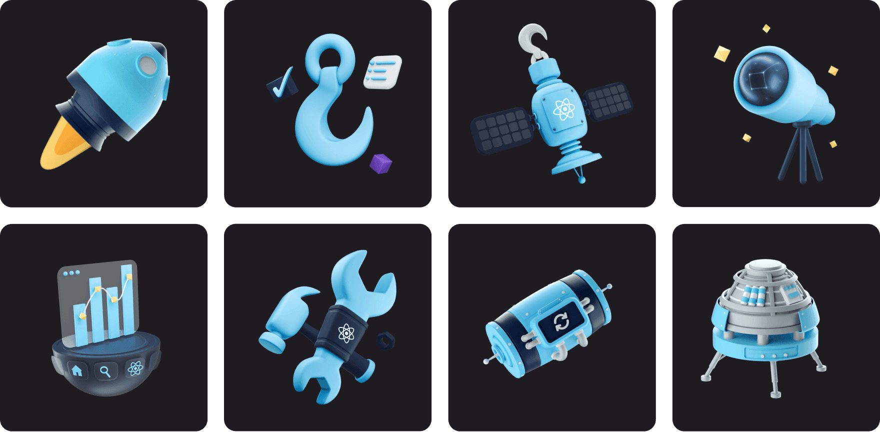 Maggie Appleton provided the guidance and art direction on how to translate Epic React workshop concepts into visual space metaphors that would be easy to grasp. She brought in the talents of freelance illustrators David Gil and Gustavo Henrique to do the 3D artwork that would be used throughout the workshop material.